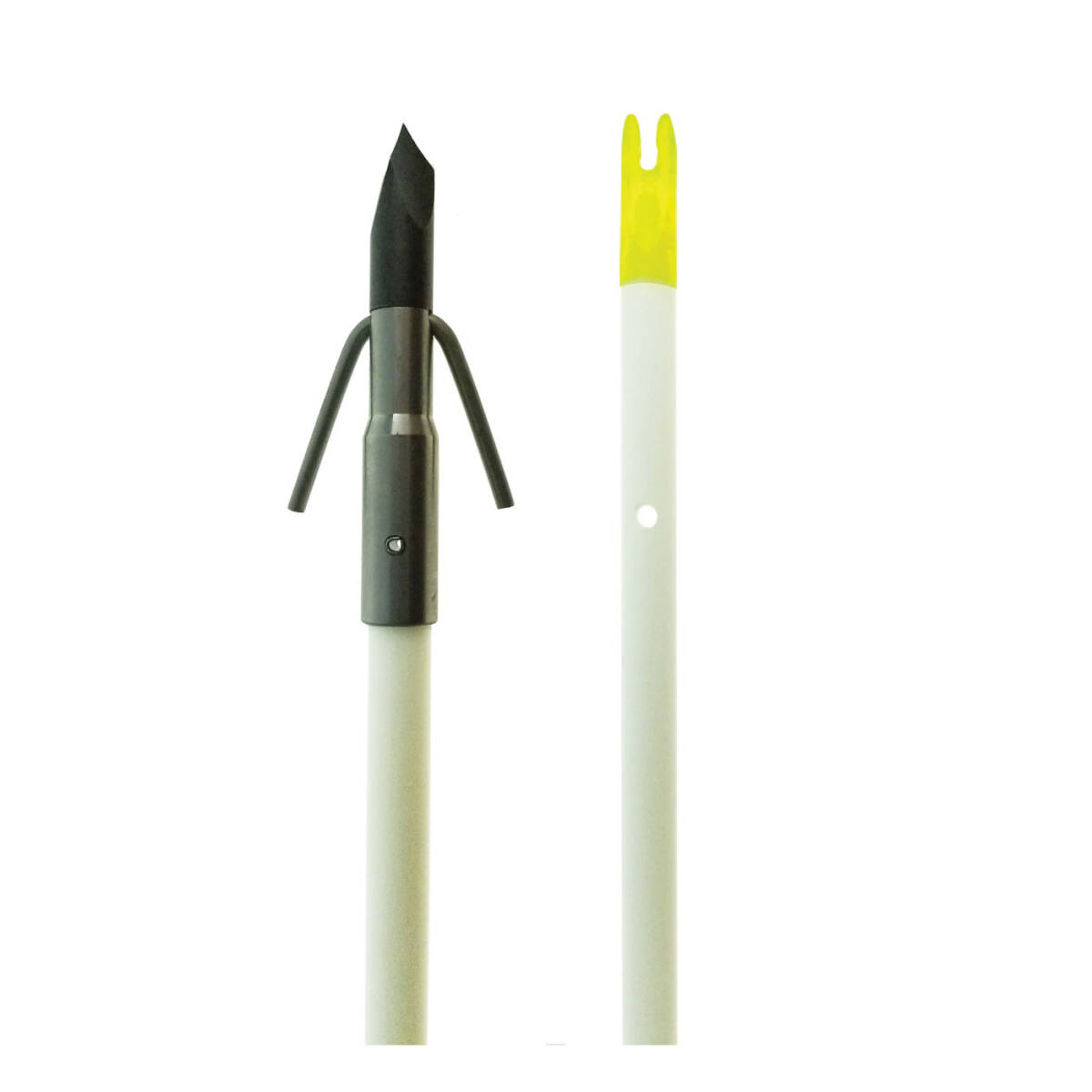 The MUZZY bow fishing classic white fish arrow is a favorite among bow fishermen. The white fiberglass shaft comes tipped with a carp point or gar point, nock installed and a pre-drilled cross hole for tying your line or installing a safety slide.