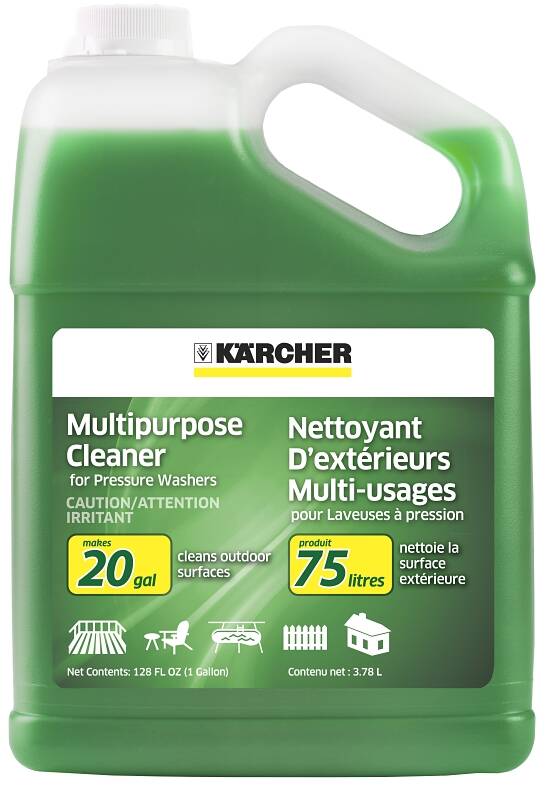 Speed up your pressure washing with the help of Kärcher's Multipurpose Detergent. This concentrated soap formula makes up to 20 gallons of ready to use detergent – you control the amount of dilution. Kärcher chemicals are specially formulated to work in tandem with your pressure washer to help you clean more quickly. Reduce the amount of time it takes to clean decks, driveways, sidewalks, home siding, patio furniture, fences and more, and clean more thoroughly to boot! This formula is biodegradable, made in the USA and is compatible with all Kärcher Home & Garden pressure washers, as well as consumer pressure washers made by other brands.