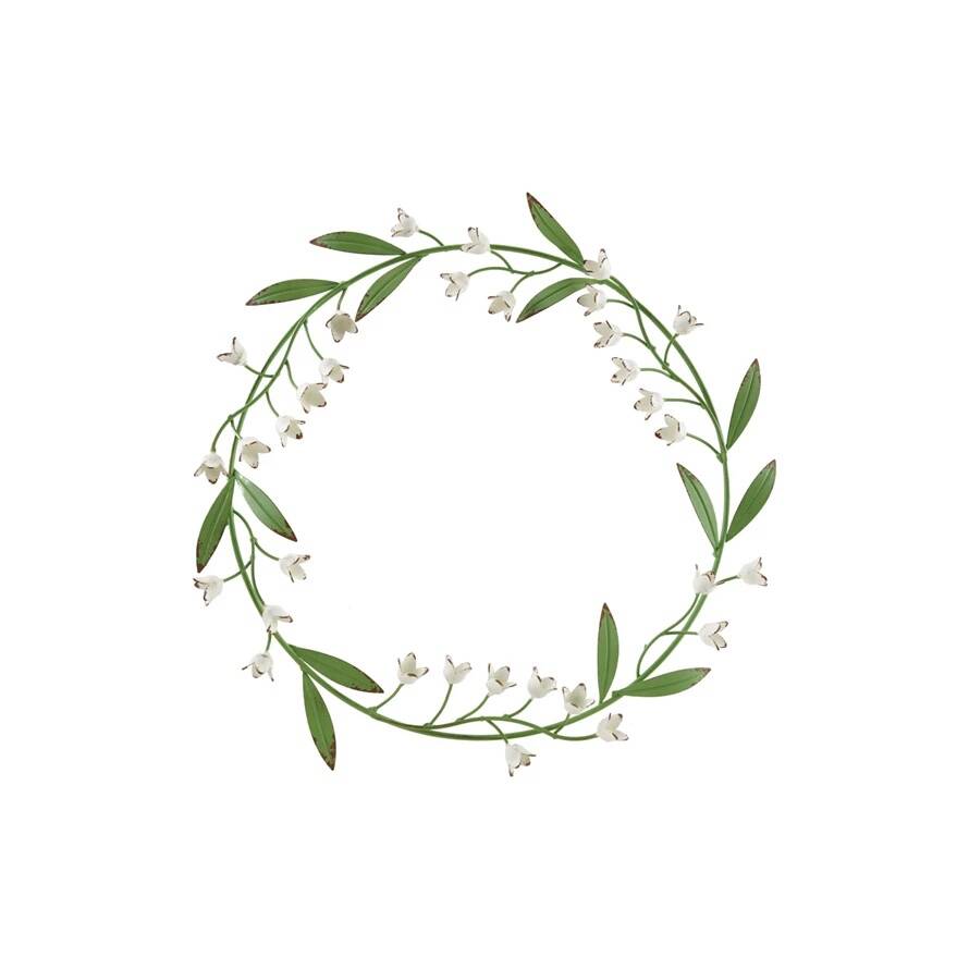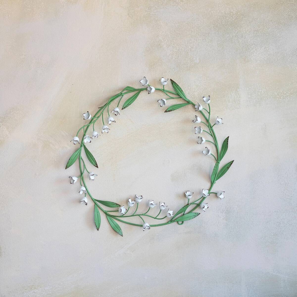 Metal Vintage Reproduction Toleware Lily of the Valley Wreath, 16 inch