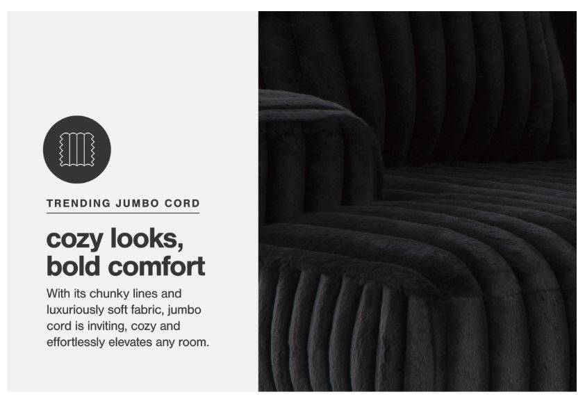 Wrapped in luxuriously soft jumbo corduroy, the Midnight-Madness sectional takes cozy and inviting to a higher level. This sumptuous piece is perfect for unwinding after a long day, with exceptionally textured cushions that deliver pure indulgence. Now all you have to do is kick back, sink in and relax.