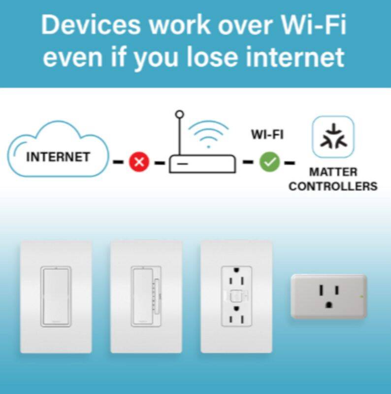 Take comfort in the convenience of controlling your lights and appliances, from any smart device, whether you're home or not. The Smart Outlet with Matter enables you to control your lights, appliances and more, from any Matter- compliant smart home platform. Combining classic design and advanced functionality with a simple connection to your existing smart home solution using your home's existing wireless network, Smart Lighting from the radiant® Collection lets you control power and set the exact lighting you want – when and where you need it. The bottom outlet of the device is always on, while only the top outlet can be controlled.