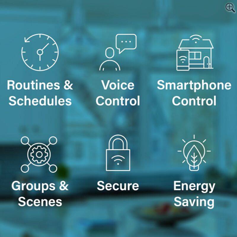 - Voice Control: When paired with a voice assistant, use your voice to turn on the lights or set more advance scenes, schedules or routines.