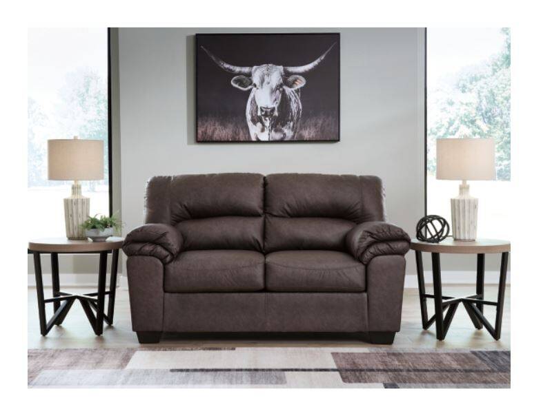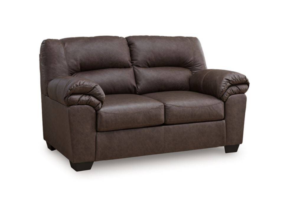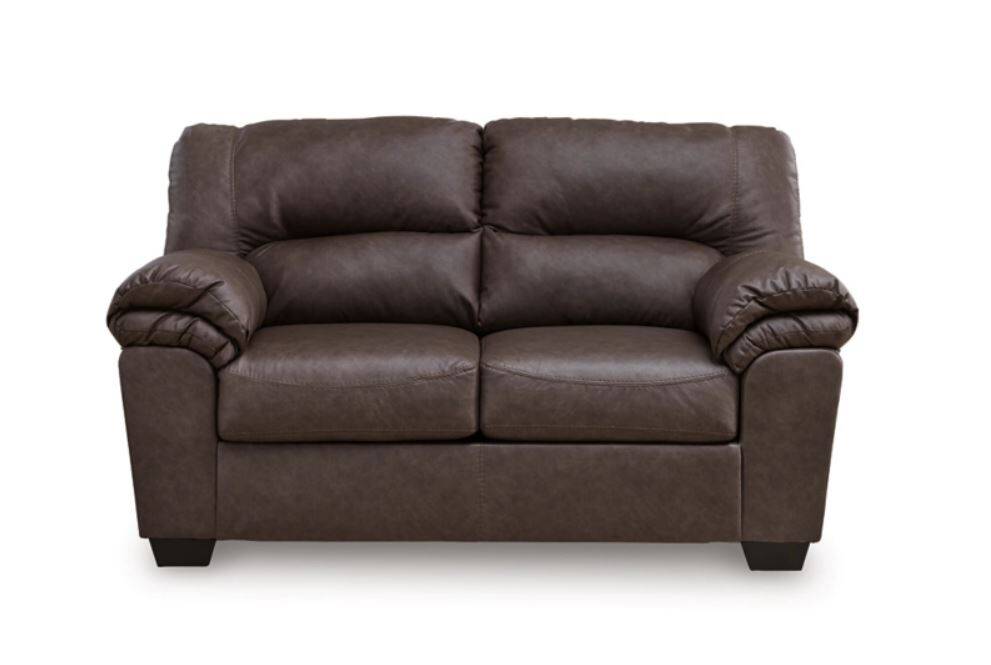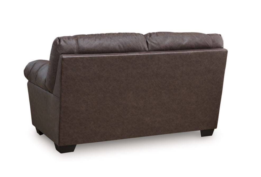 Modern comfort never looked so good. Sporting supremely soft yet durable cushions accented with high-fashion jumbo stitching, this stunning loveseat is the ultimate choice in comfortably cool, contemporary style. Its umber-hued faux leather indulges with an upscale feel and wows like the real thing.