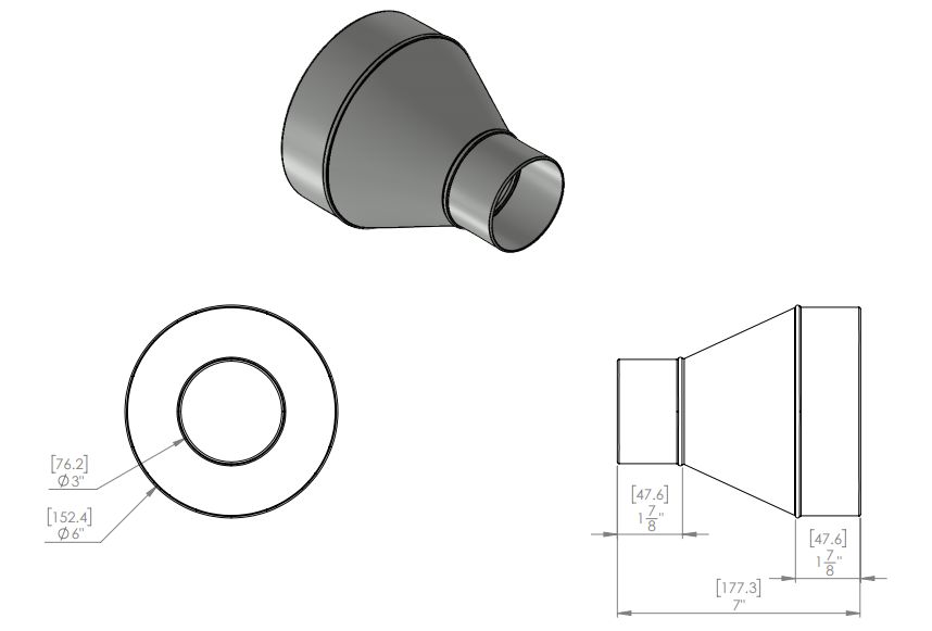 6-Inch To 3-Inch 30-Gauge Galvanized Steel No Crimp Duct Increaser/Reducer