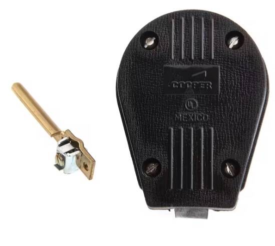 • Heavy-duty vinyl crowfoot-design electrical plug with three heavy duty brass blades
