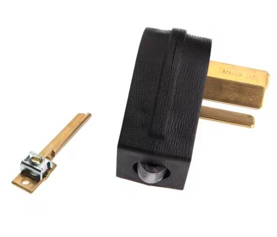 Heavy-duty vinyl crowfoot design electrical plug with three heavy-duty brass blades. Has an extra blade to convert to 30 A plug. NEMA 10-50, 10-30.