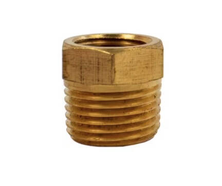 Brass 3/8 inch (9.53 mm) Male National Pipe Thread (MNPT) to 1/4 inch (6.35 mm) Female National Pipe Thread (FNPT) reducer / adapter. Reduces 3/8 inch (9.53 mm) MNPT connections to 1/4 inch (6.35 mm) FNPT connections. Ideal for connecting dissimilar sized pressure washer equipment.