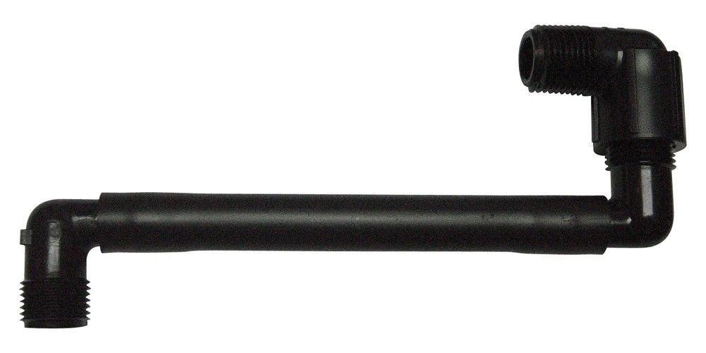 6-inches long with 1/2-inch x 1/2-inch male pipe threaded elbows, swing pipe assembly