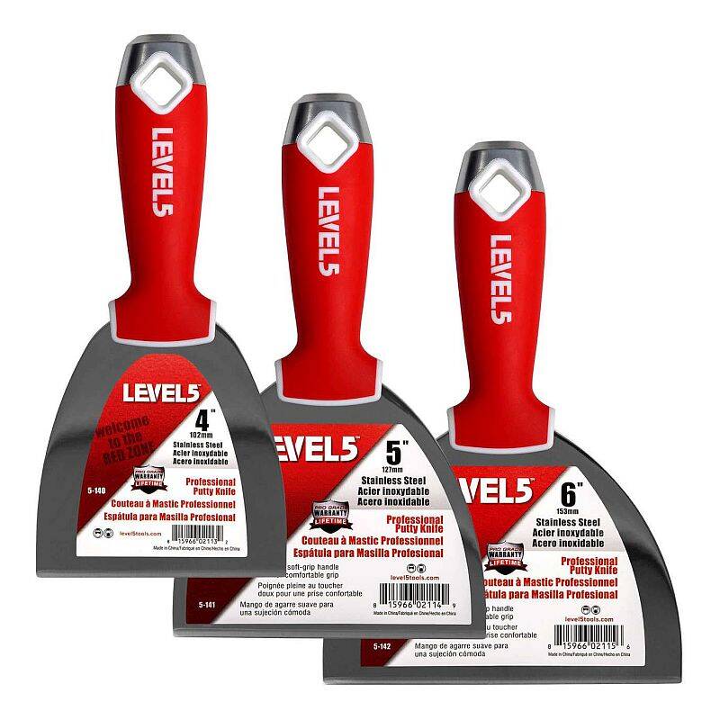 LEVEL5 Stainless Steel Joint Knives with Soft Grip Handles are professional grade knives designed for reliable, all-day use on the job site. The handle cores are manufactured of glass-reinforced polypropylene and over-molded with a comfortable soft grip elastomer. The proprietary grip profile was developed through years of finisher feedback to minimize hand fatigue.