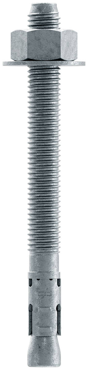 The Strong-Bolt 2 wedge-type expansion anchor in a mechanically galvanized finish can be used where a high-load-resisting anchor is needed for exterior applications. It has the same dual undercutting embossments on each clip segment as the zinc-electroplated version. Suitable for horizontal, vertical and overhead applications, the STB2-MG anchor is tested in uncracked concrete in accordance with AC193 and also in uncracked masonry in accordance with AC01.