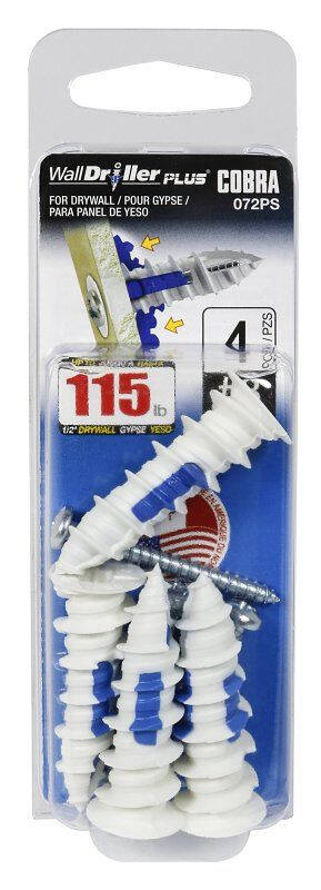 The WallDriller PLUS®, 2X stronger than our 1st generation, is designed with three expandable legs that grip tightly behind the drywall for maximum holding power. Its fine-centered point helps guide the anchor into the wall with flawless precision. A sharp profile thread cuts deeply into the hole without damaging the drywall, ensuring excellent holding power and stability. The sharp cutting edge reduces the force required to cut the material, making it a self-drilling anchor without pre-drilling.