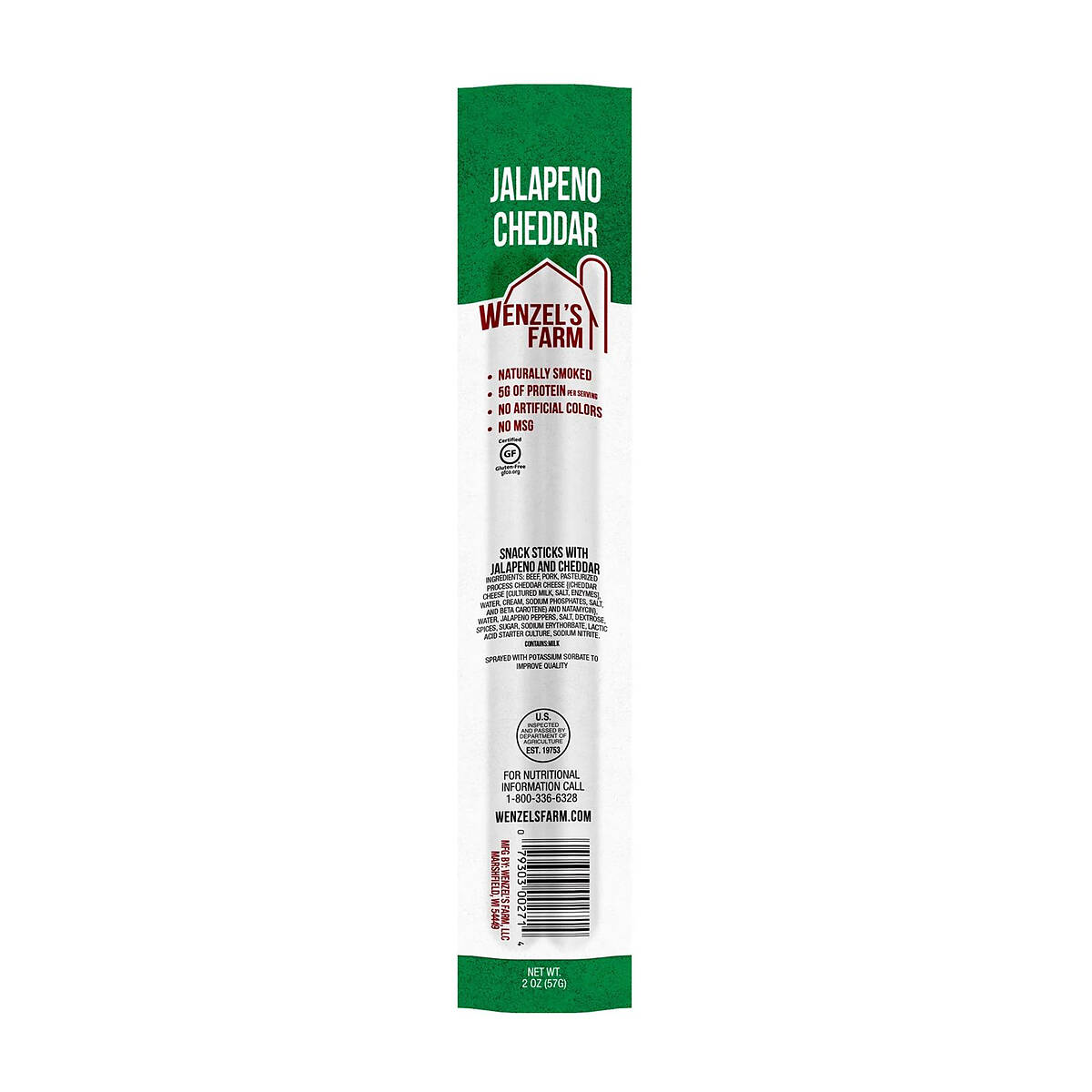 Ingredients Beef, Pork, Pasteurized Process Cheddar Cheese {(Cheddar Cheese [Cultured Milk, Salt, Enzymes], Water Cream, Sodium Phosphates, Salt, and Beta Carotene) and Natamycin}, Water, Jalapeno Pepper, Salt, Dextrose, Spices, Sugar, Sodium Erythorbate, Lactic Acid Starter Culture, Sodium Nitrite, Sprayed with Potassium Sorbate to improve quality. Contains Milk.
