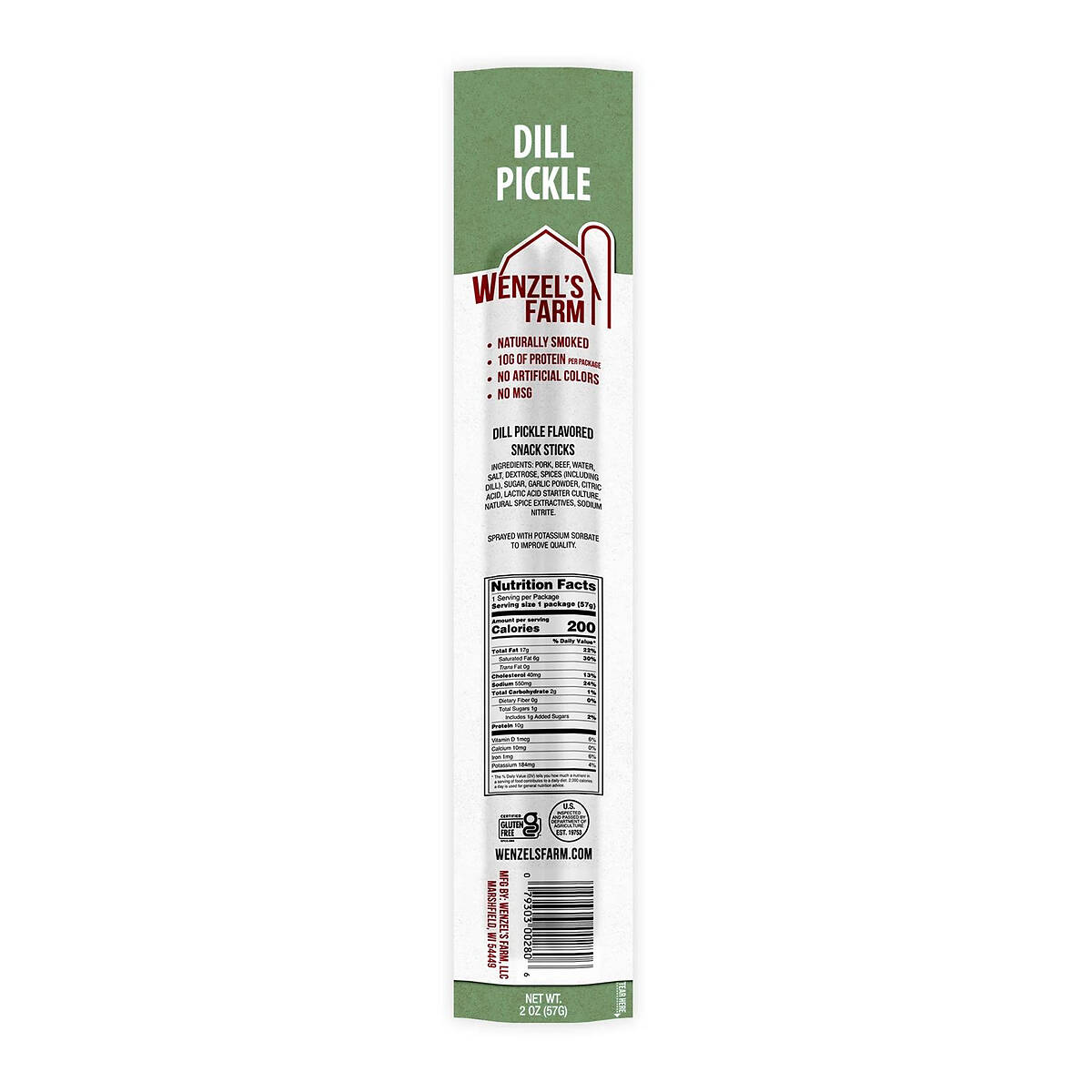 | Ingredients | Pork, Beef, Water, Salt, Dextrose, Spices (Including Dill), Sugar, Garlic Powder, Citric Acid, Lactic Acid Starter Culture, Natural Spice Extractives, Sodium Nitrite. Sprayed with Potassium Sorbate to Improve Quality. |
