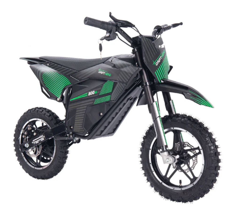 The Drift Hero 800W Dirt Bike is perfect for beginners. Parents have control with adjustable speed settings, and the great suspension with disc brakes keeps kids comfortable and safe. But it's not just for beginners. The powerful battery and solid build will last for years.