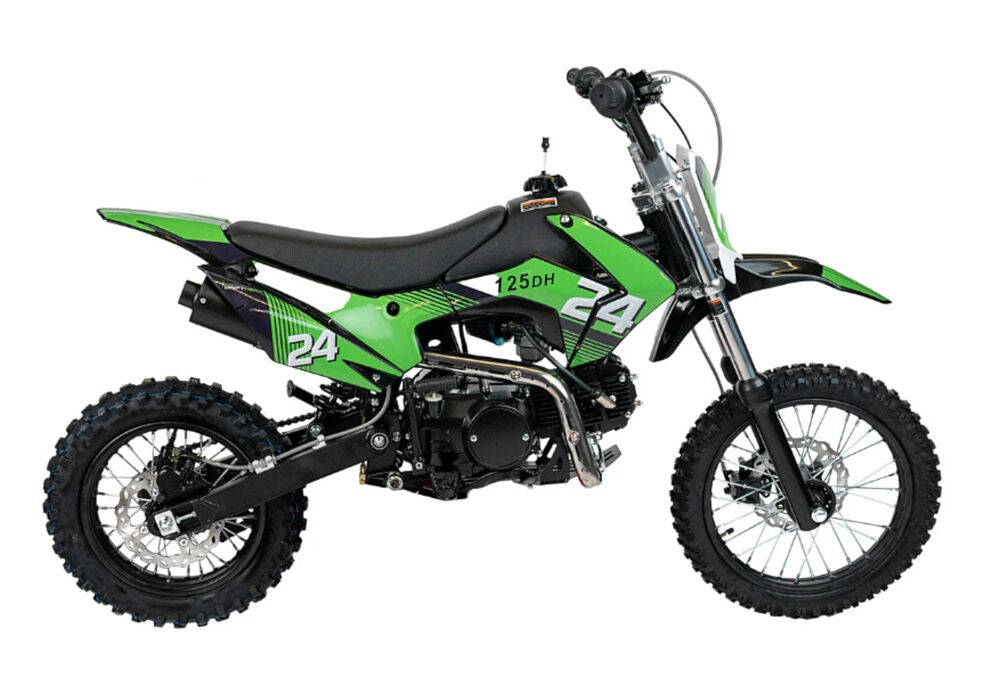 The DH125 is a 124cc motorcycle built for performance. It will hit a top speed of 25 mph, and disc brakes and hydraulic shocks make the ride smooth and safe.