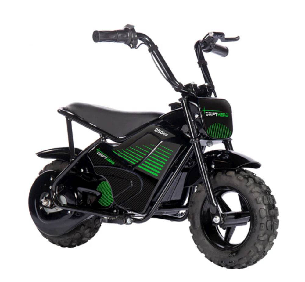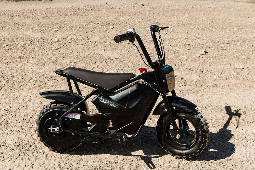 The Drift Hero 250W mini bike is perfect for beginners. It is durable, sturdy, and dependable. It has a max speed of 9 mph.