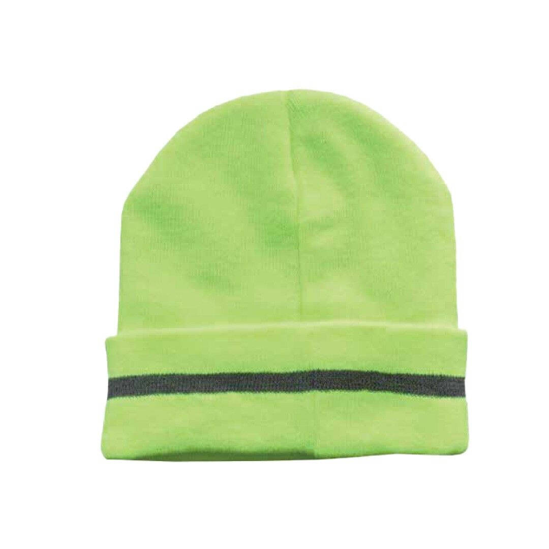 Beanie Cap, Lime with Reflective Stripe, Two-Ply Acrylic Outer, Polar