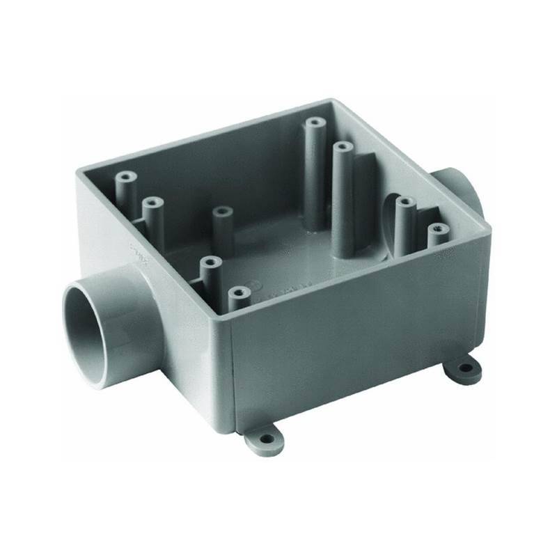 Carlon Switch Box, 3/4 in Hub, 2 -Outlet, 2 -Gang, Square, Cubic Capacity: 32 cu-in, 4.62 in L x 4.62 in W x 1.98 in H Dimensions, PVC, Gray
