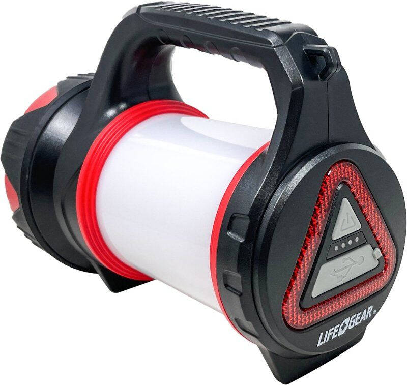Introducing the LifeGear USB rechargeable multi-mode lantern with advanced safety features, making it a reliable companion for home, car or office emergencies, storms and power outages. This versatile lantern offers four functions: high, low and strobe spotlight, high and low side area light and a Back RED Safety Solid and flasher mode for added safety. With a user-friendly two-switch system, you can easily switch between the spotlight and area light, as well as access the safety RED functions. The lantern boasts a large ribbed hand grip for comfortable use and includes an LED battery power indicator for convenience. Its lightweight and portable design make it easy to carry and it comes with a handy shoulder strap and USB Micro charging cord for hassle-free charging. Additionally, the lantern serves as a USB Out back-up power bank, allowing you to charge phones and tablets during emergency power outages. Prepare yourself for any situation with the LifeGear USB rechargeable multi-mode lantern.