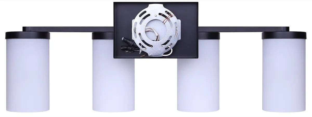 4-Light Britton Vanity Britton Light Fixture Black With Flat Opal Glass