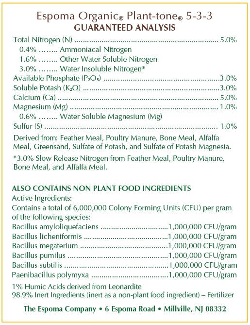 Plant-tone is the original all-purpose plant food for organic gardening. It’s a rich blend of the finest natural & organic ingredients and enhanced with humates & beneficial microbes. No sludges or fillers are ever used. And because it’s made in our state-of-the-art solar powered manufacturing facility, consistency and quality are guaranteed.