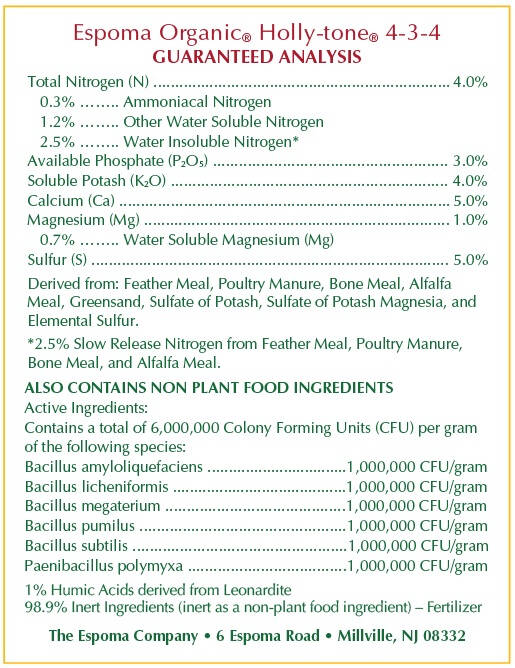 Holly-tone is the original plant food for all acid-loving plants! It’s a rich blend of the finest natural & organic ingredients and enhanced with humates & beneficial microbes. No sludges or fillers are ever used. And because it’s made in our state-of-the-art solar powered manufacturing facility, consistency and quality are guaranteed.