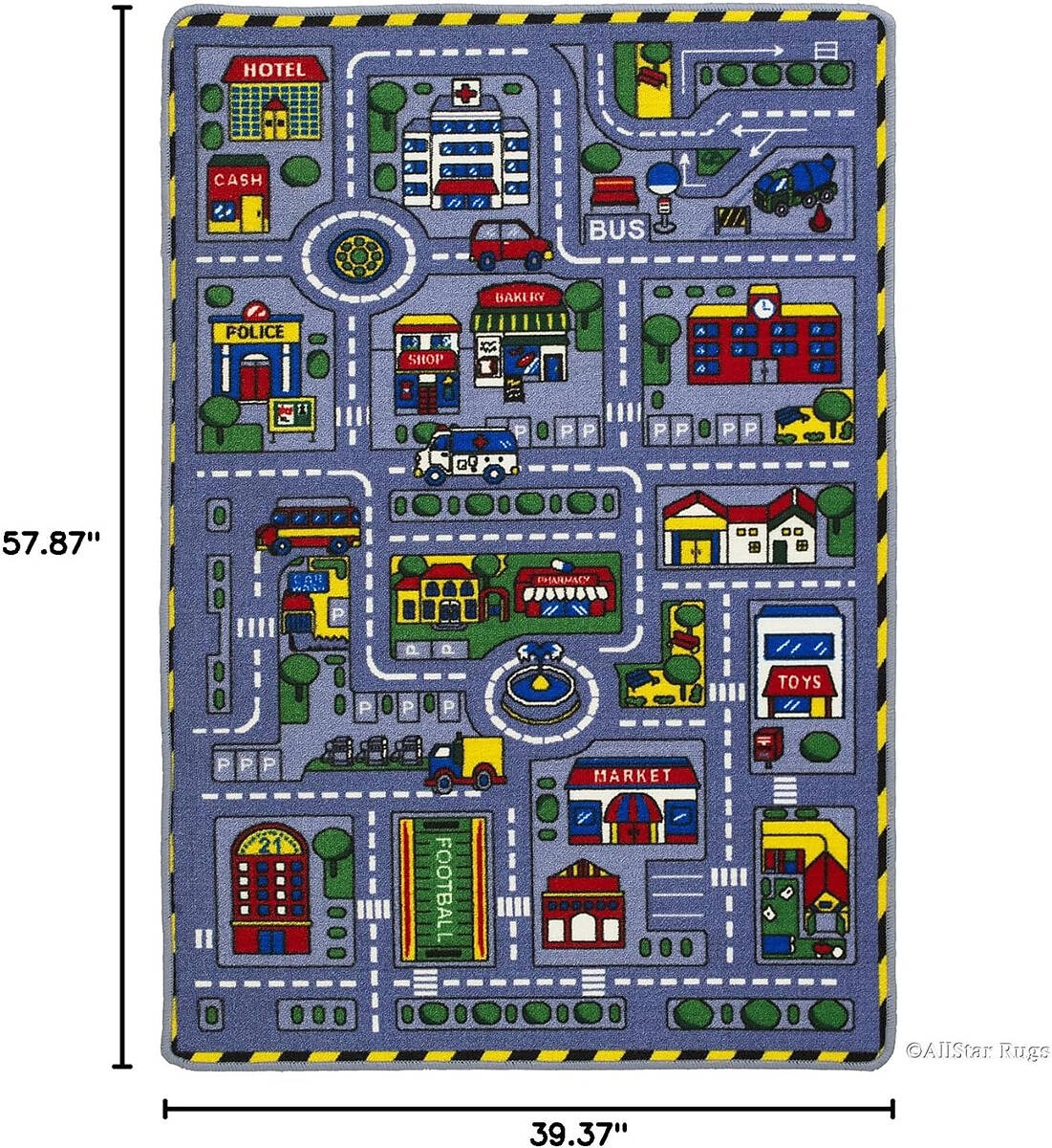 These high-quality rugs are tufted with soft-touch Nylon Yarn loop pile, creating a comfortable & warm area to play and spend time vs on a cold, hard floor. Printed utilizing New Technology 16-Color Combo Techniques. Your kids will love the bright colors & designs while they play, learn, and spend endless hours on these fun, colored rugs. Each rug is designed to capture the attention of young kids and allow them a fun & active way to learn & play at the same time. Easy maintenance, easy to clean, machine washable, and light weight allows you to easily move and use these rugs anywhere inside or outside of your house. The Non-Slip Action Gel backing makes these rugs the perfect options for hard surfaced areas, tiles, wood, stone, laminate, etc such as kitchens.
