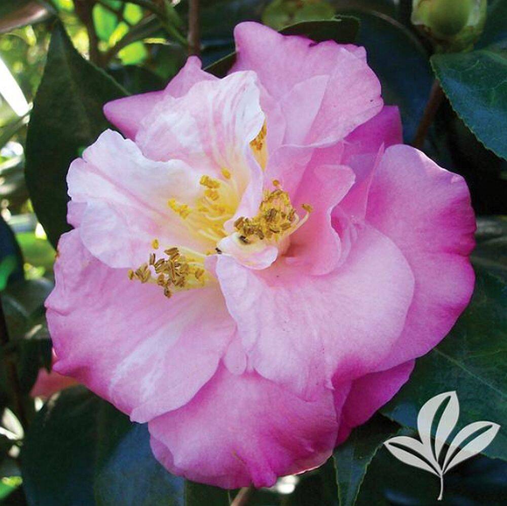 Has mildly fragrant, medium size, semi-double, blush pink to deep pink flowers often with pink edges that bloom in spring. A vigorous upright shrub with large glossy dark green foliage growing 6 to 7 ft tall and wide. A great specimen in lawns and borders.