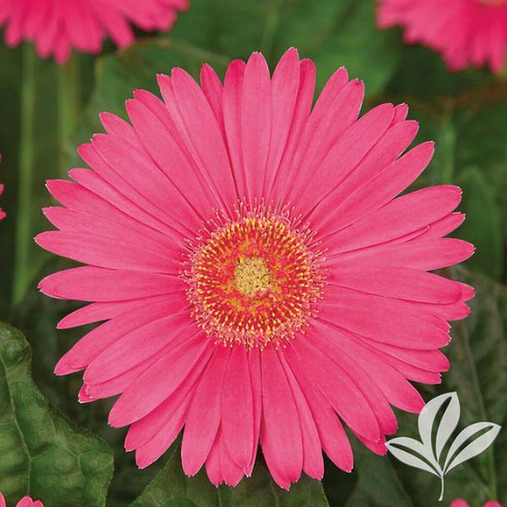 A profusion of large daisy-like vibrant pink flowers bloom on sturdy stems from spring to frost. A robust variety, reaches 18 in tall and wide. Pest and disease resistant. Ideal for containers, borders and cut flowers.