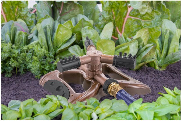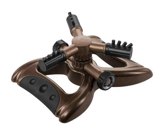 The Gardeners Choice 3-Arm Sprinkler from Orbit was created specifically for the Gardener and their care of delicate flowers, landscaping, vegetables and seedlings. This durable weighted metal base sprinkler offers adjustable coverage perfect for small to medium areas of your lawn or garden. The revolving sprinkler arms provide rain-like coverage that evenly waters plants without being too powerful to harm them. Rotate the three versatile arms to adjust how far the spray covers. Designed to water up to 45 feet in diameter, this sprinkler is sure to get the job done. The Orbit Gardeners Choice line of products was designed with the Gardeners ease of use and long-lasting durability in mind.