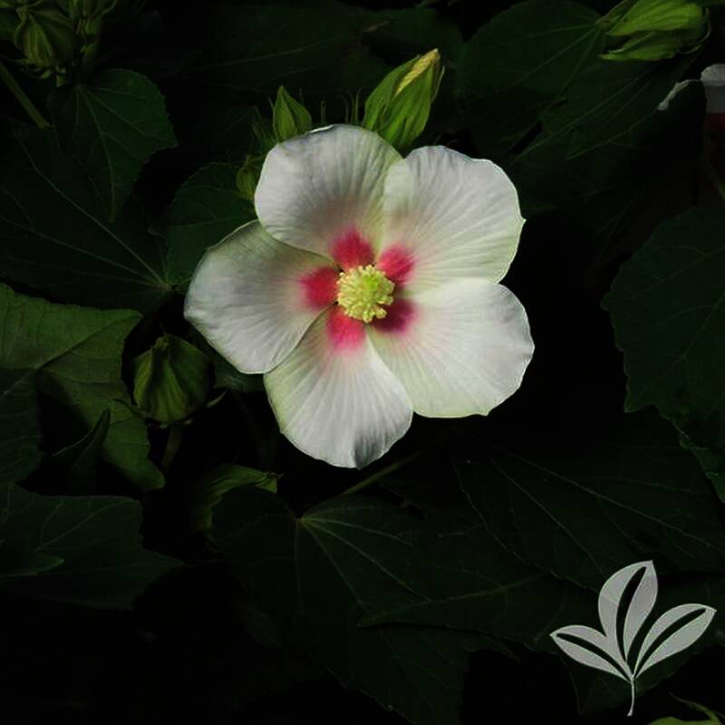 Features prolific 6 to 8-inch white flowers with a deep pink throat that bloom from late summer to fall. A hybrid between American and Asian species that provides hardiness and showiness. Reaches 5 ft tall and 3 ft wide. Has very disease resistant foliage.
