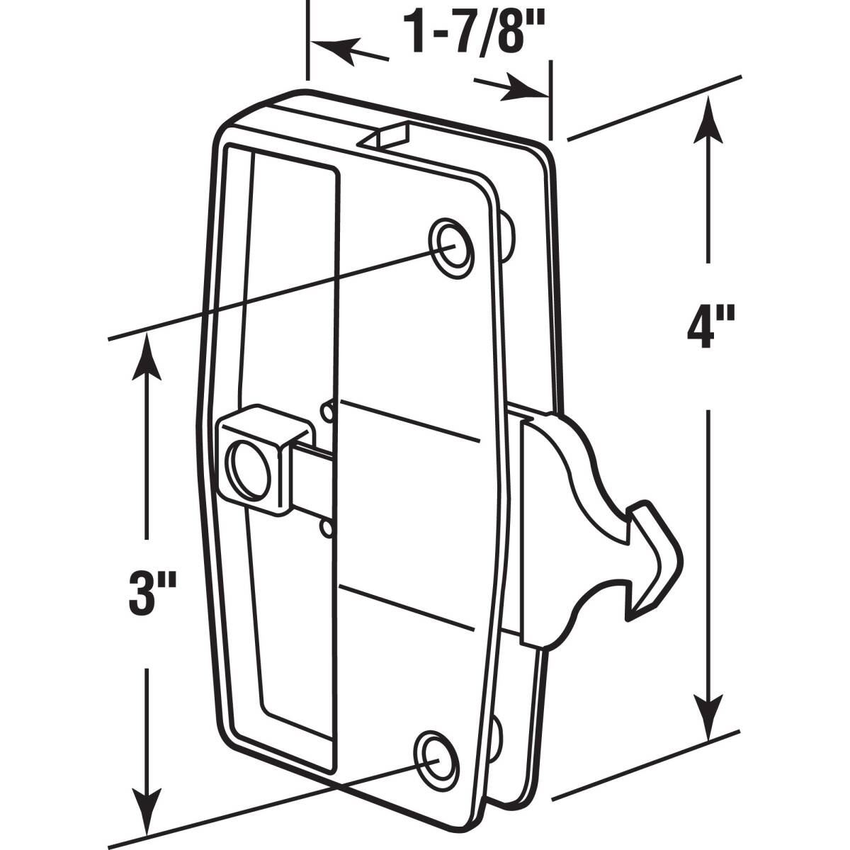 This sliding screen door handle fits a Columbia 1/2 inch thick door as well as a variety of other patio door manufacturers. It contains an inside pull and outside pull. The handles have mounting holes 3 inch on center. The spring-loaded nylon latch rotates up and down to engage the keeper (Prime-Line parts A 125, A 163 or A 166). The inside latch lever has a nite lock feature.