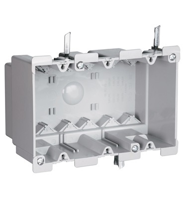 Triple Gang, Old Work Switch and Outlet Box with Swing-Bracket for mounting. Adjusts from 1 1/4 in down to 1/8 in . Six Auto/Clamps for Each End.