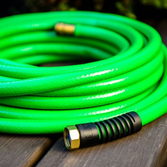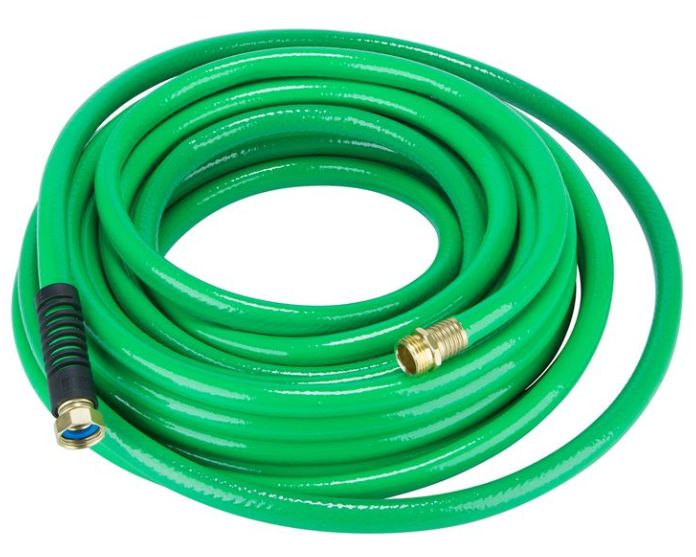 This flexible garden hose also includes Swans patented Hose Armour® at the female coupling to prevent it from kinking at the water source, while aircraft-grade-aluminum couplings are crush-resistant to 900 PSI. An easy-to-clean jacket, meanwhile, is abrasion-resistant to help keep the WeatherFLEX® hose free from wear and tear.