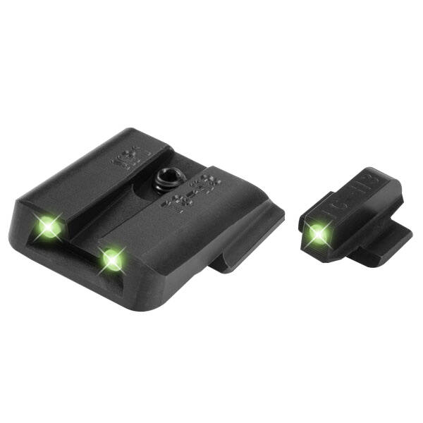 When the lights go out, your sidearm doesn't need to be left in the dark. Tritium night sights transition from standard white dot sights during the daylight, to glowing green dots in the dark. Tritium does not need batteries and does not need to be charged with light it simply glows.