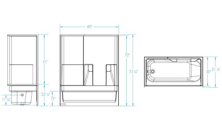 • Molded toiletry shelves (on right side of unit, regardless of drain option