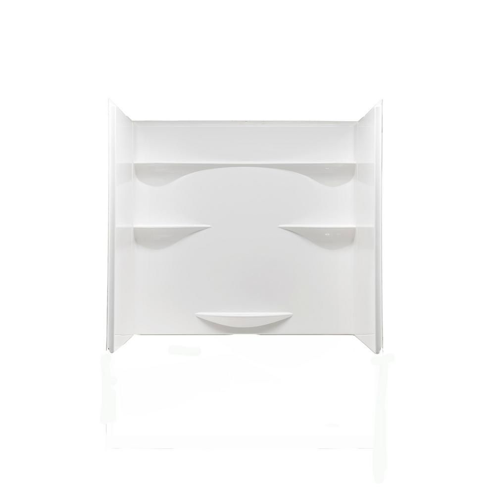 This white shower surround features an AcryliX&trade applied acrylic finish and toiletry shelves with a direct-to-stud, lock installation system.
