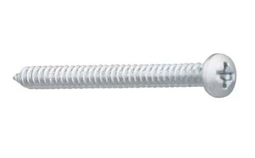Screws with coarse threads and a pointed end for use in sheet metal. Sometimes also used in plastic, fiberglass, or wood. Phillips head.