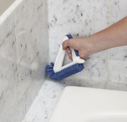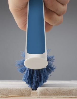 Uniquely shaped bristles makes cleaning grout and corners fast and easy. V-shaped bristles get deep into grout for a superior clean and a round head allows for easy corner cleaning. Blue scrub-zone bristles scrub tough mildew, grime and soap scum from grout, shower door tracks, bath tubs and more. The true grip handle provides maximum comfort while allowing you to scrub at any angle for extra scrubbing power.