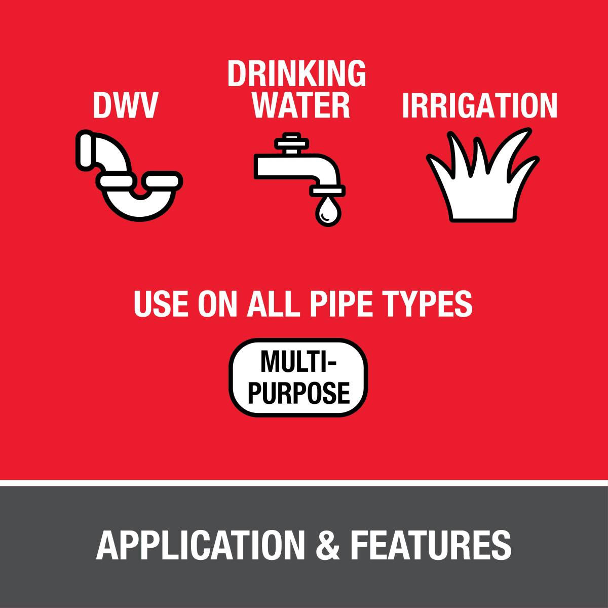 | Usage | For Potable Water, Pressure Pipe, Conduit and DWV |