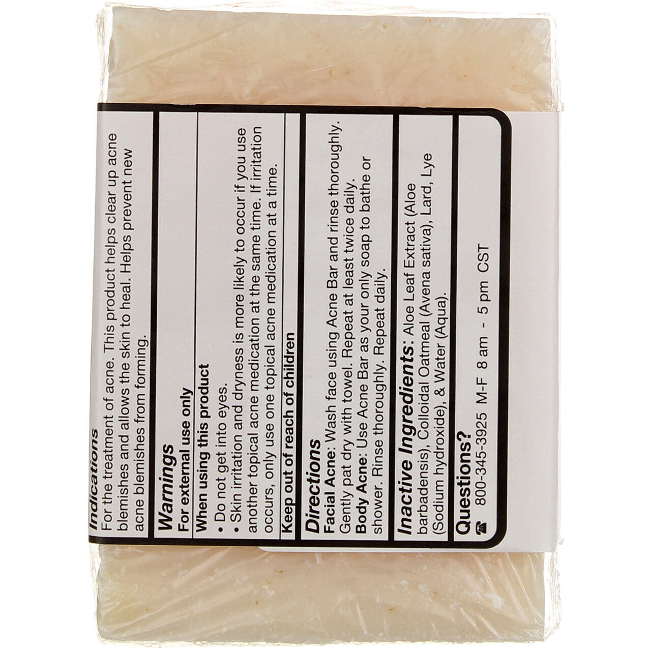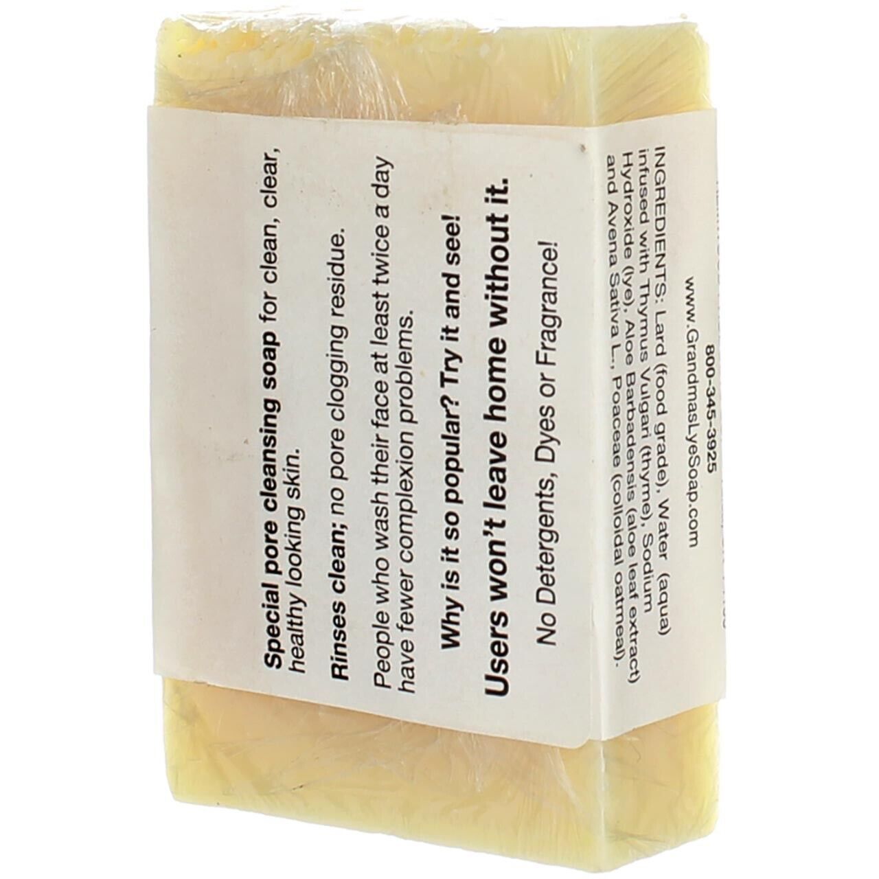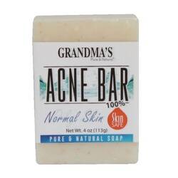 Specially formulated for the treatment of acne on oily or normal skin. No detergents, dyes or fragrance. GRANDMA'S acne bar helps clear up acne blemishes and allows the skin to heal. Helps prevent new acne blemishes from forming. Colloidal oatmeal soothes skin while castor helps control oiliness. Because we are skin safe, sufferers of serious skin conditions and common dry skin have now found consistent relief by using Grandma's lye soap and her other soap products, including non-detergent laundry soap.