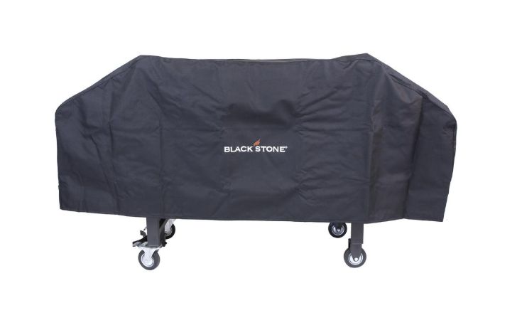 Protect your 36 in Blackstone Griddle with this heavy duty polyester cover. Made of double layer 600 Denier polyester with reinforced corners for durability and wear/tear resistance. Water and UV resistent. Sealed seams help prevent water penetration. 2 under-body nylon straps buckle together to secure the cover to the Griddle Cooking Station. Beautiful logo embroidered on front that makes a quality statement.