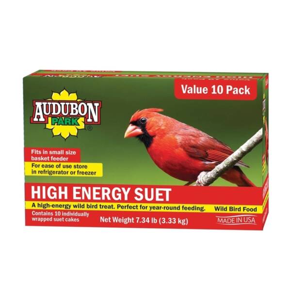 Audubon Park Wild Bird Food, Type: High Energy Suet, 7.34 lb, Suitable Feeder Type: Basket, Attracts: Cardinals, Chickadees, Jays, Nuthatches, Titmice, Woodpeckers, Wrens, Ingredients: Rendered Beef Suet, Cracked Corn, White Millet, Black Oil Sunflower