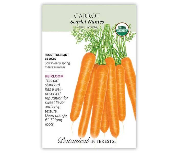 Scarlet Nantes' is an 1850s' French favorite for many reasons—sweet flavor, tender, abundant producer, and consistent quality. Nearly coreless! There is no finer garden treat than a homegrown carrot pulled fresh from the earth!