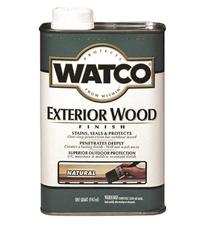 WATCO Exterior Wood is a unique penetrating oil that hardens in the wood, not on the wood. New, old, or pressure treated wood becomes water repellent, provides UV and mildew protection, and resists warping and swelling caused by changes in weather. Durable and easy to use, WATCO Exterior Wood Finish is great for decks, siding, fences and more. Please read product labels for additional directions and precautions before using