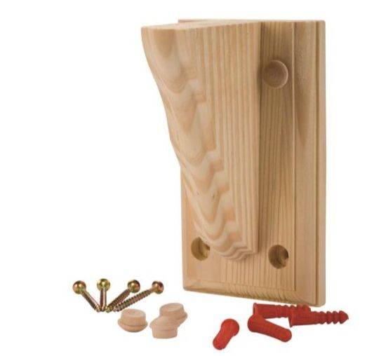 Enjoy the warmth and beauty of shaped wood brackets and corbels. Shaped, sanded, unfinished, they are ready for your paint or stain.