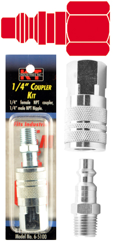 Includes (1) 6-5106 1/4 in NPT 1/4 in Female Zinc-Plated Brass Coupler,(1) 6-5101 1/4 in NPT 1/4 in Male Zinc-Plated Steel Nipple