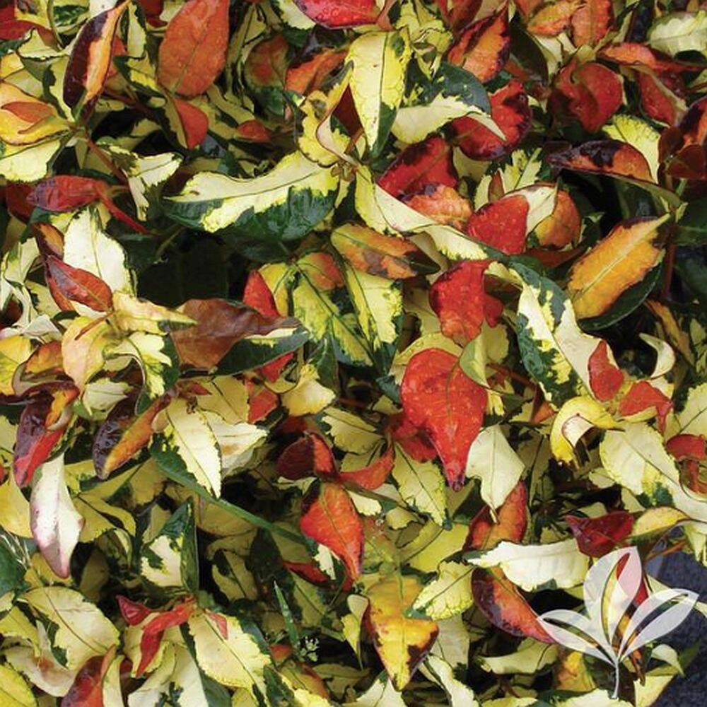 New leaves are red turning a creamy yellow and provide hues of green, blue-green, orange, yellow and red with beautiful variegation. Has fragrant, white summer flowers. Grows 6 to 12 in tall and 18 to 24 in wide. Deer resistant. Drought tolerant once established. Needs frequent pruning for thickness.