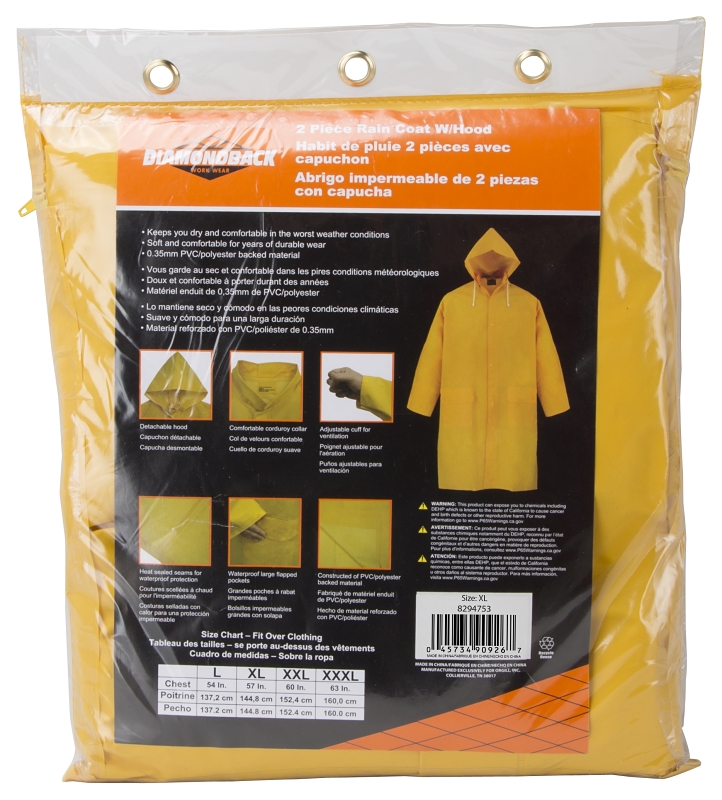Extra Large, Yellow, Polyester/PVC, Hooded Raincoat