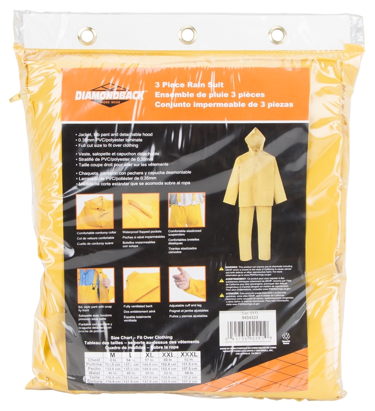 3-Extra Large, Yellow, PVC/Polyester, Rainsuit, 3-Piece